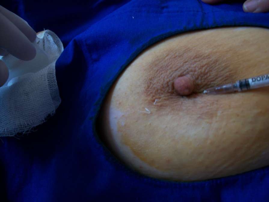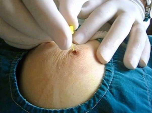 Duktoskopi işlemi öncesinde meme başı çok ince insülin iğnesi kullanılarak uyuşturulmaktadır.